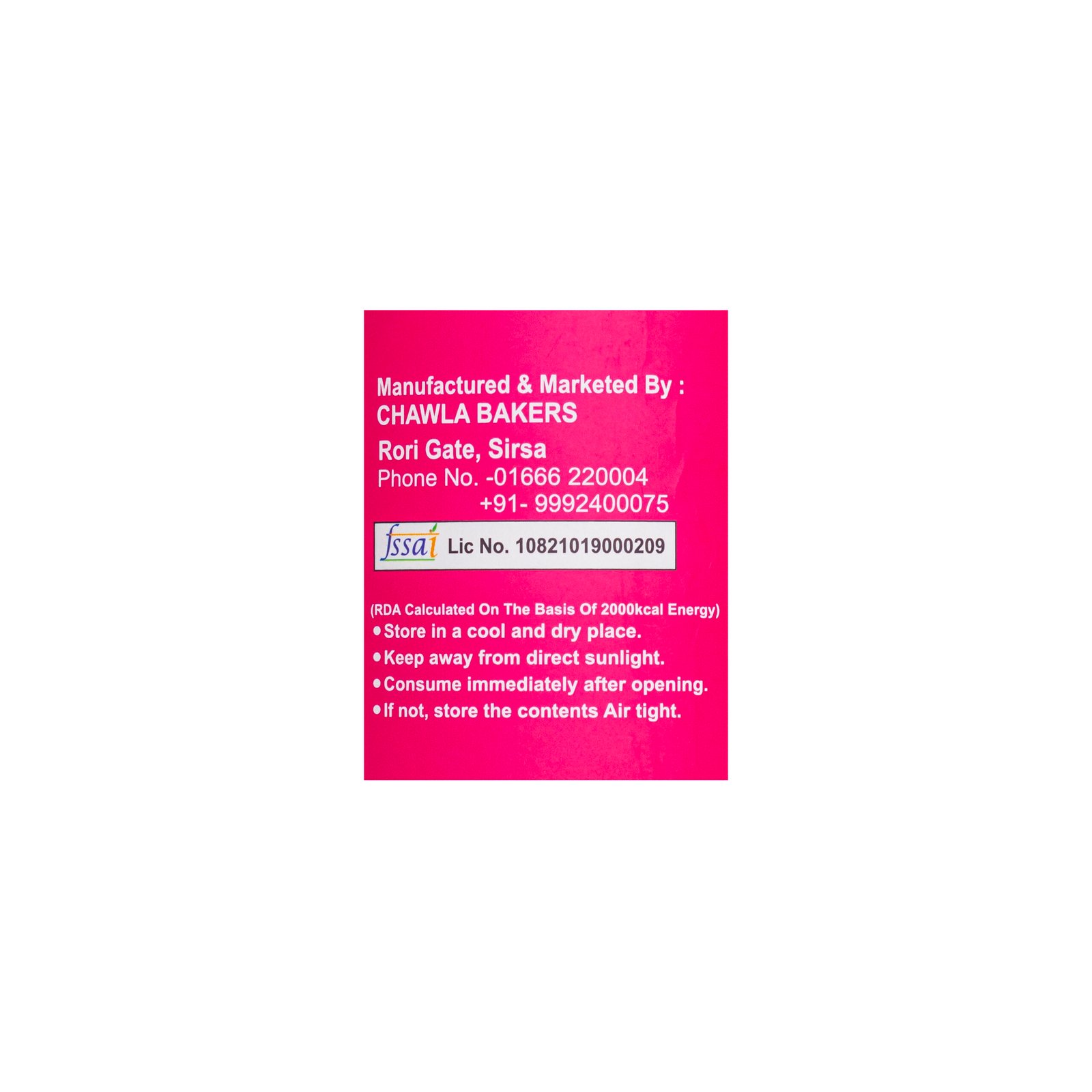 Manufactured & Marketed By : CHAWLA BAKERS
